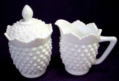 Vintage MILK GLASS Creamer & Sugar Bowl FENTON Hobnail