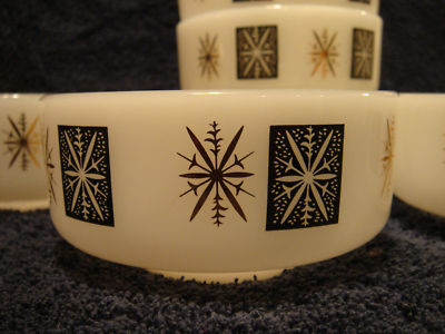 Set of 6 Federal Milk Glass Bowls Black Gold Star