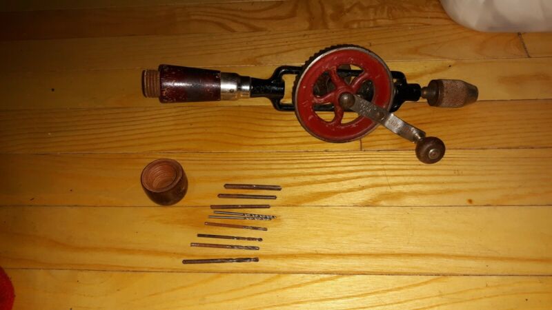 Title (ebay affiliate link): Vintage ATLAS Tools Co. Egg Beater Drill. Compartment holds 9 bits