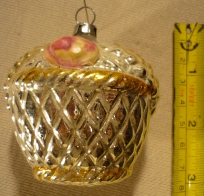 VTG. GLASS BASKET CHRISTMAS TREE ORNAMENT