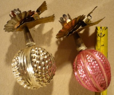 VTG. TWO GLASS CHRISTMAS TREE ORNAMENT ON CLIP
