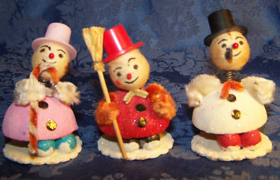 3 Vintage Snowman Ornaments Japan
