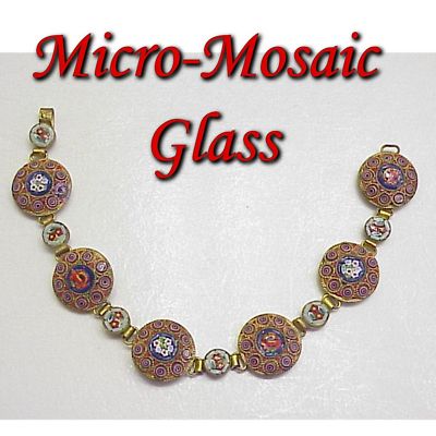 Antique Brass & Micro-Mosaic Glass Flower Bracelet