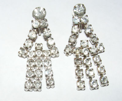 Antique Rhinestone Dangle Screwback Earrings~!