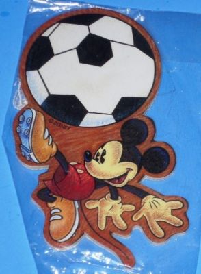 Title (ebay affiliate link): MICKEY MOUSE PLAYING SOCCER WOODEN GIFT TAG - NR!