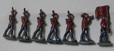 Lot of 7 Marching Lead Soldiers Bugler Flag Britain?
