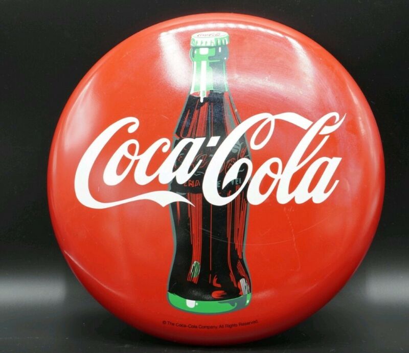 Title (ebay affiliate link): VINTAGE 1990 COCA COLA COKE BOTTLE 20" ROUND METAL ADVERTISING BUTTON SIGN