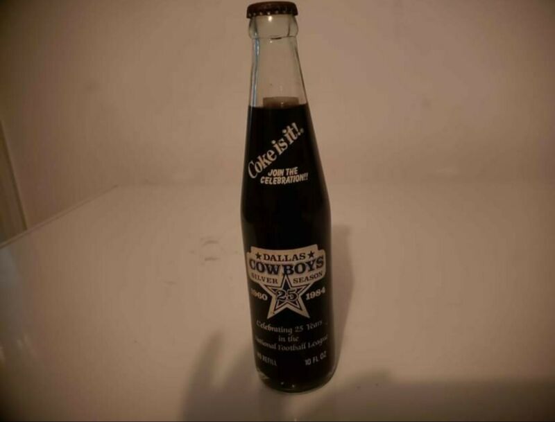 Vintage Dallas Cowboys Coke Bottle, 25th Anniversary NFL Never Opened collectabl
