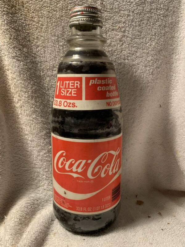 Title (ebay affiliate link): RARE FULL 33.8oz COCA-COLA PLASTIC COATED ACL SODA BOTTLE 1 LITER