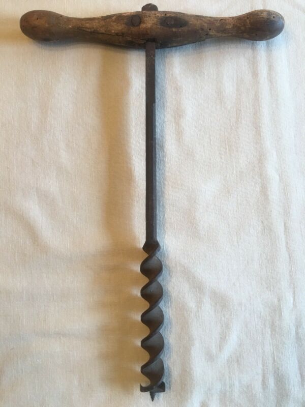 Title (ebay affiliate link): Antique Rustic Farm Tool Barn BEAM 16" AUGER 1" BIT HAND DRILL + WOODEN HANDLE!
