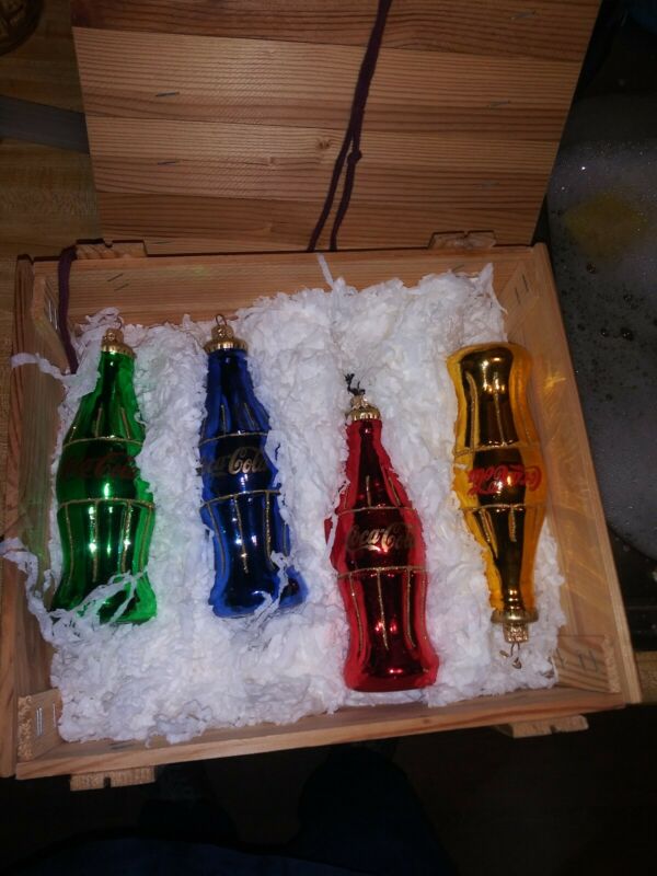 Title (ebay affiliate link): Coca Cola 4 Colored Glass Ornaments With Crate