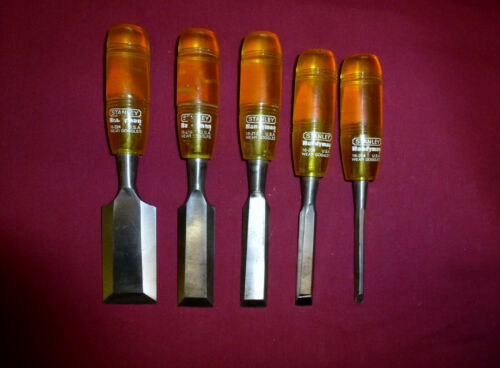 Vinage Set of 5 Stanley Handyman Wood Chisels 1/4, 1/2", 3/4, 1, & 1 1/2"
