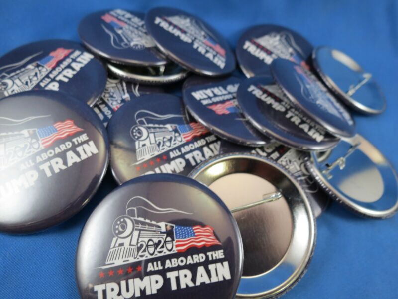 Title (ebay affiliate link): WHOLESALE LOT OF 22 ALL ABOARD THE TRUMP TRAIN 2020 CAMPAIGN BUTTON USA FLAG GOP