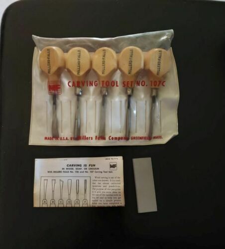Title (ebay affiliate link): NEW VINTAGE MILLERS FALLS WOOD CARVING CHISEL TOOL SET 107C MADE IN USA