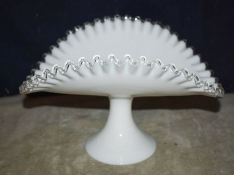 Title (ebay affiliate link): VINTAGE TALL FENTON GLASS SILVER CREST RUFFLE MILK GLASS FOOTED BANANA BOWL