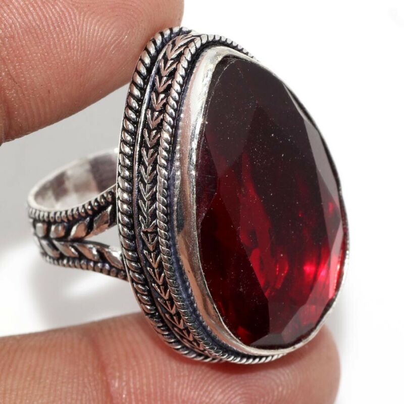 Title (ebay affiliate link): H7989 Garnet 925 Sterling Silver Plated Antique Design Ring Us 8