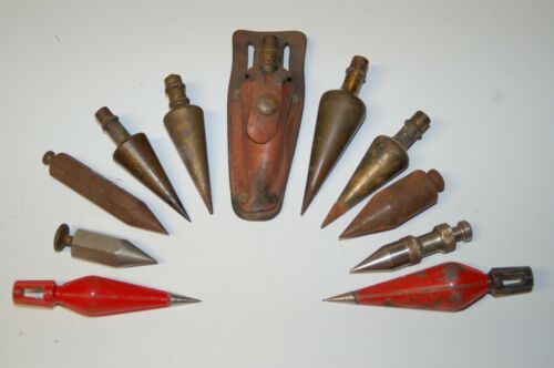11 Vintage Plumb Bobs - Berger, Stanley, Bergman, General Hdw, Standard, Hanson