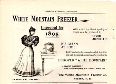 1895 WHITE MOUNTAIN ICE CREAM FREEZER AD-NASHUA,NH