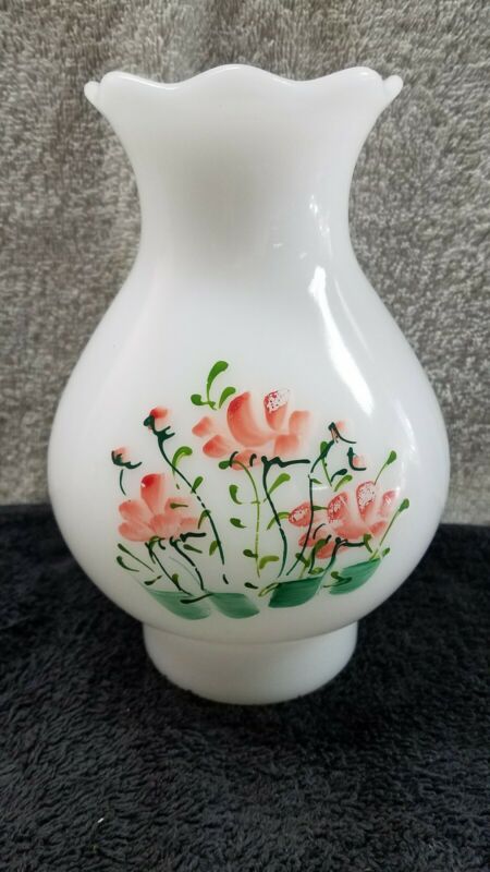 Title (ebay affiliate link): Milk Glass Hand Painted Floral Hurricane Chimney 3" Fitter 7" Tall Wall Sconce