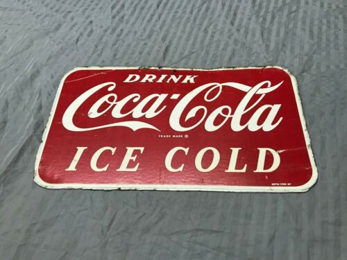 Title (ebay affiliate link): Vintage "Drink Coca-Cola" Ice Cold Metal Sign 13" Cut from a Old Coke Machine