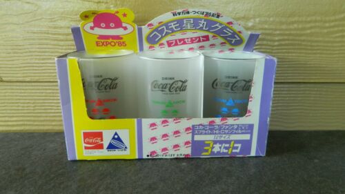 COCA-COLA EXPO ''85 TSUKUBA SCIENCE EXPO 1985 SET OF 3 VTG GLASSES COKE POP