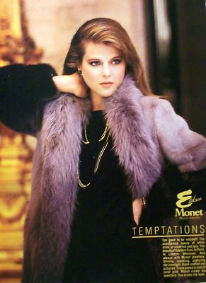 Silver Fox Blue Mink Fur Coat Monet Jewelry 2 Sided Ad