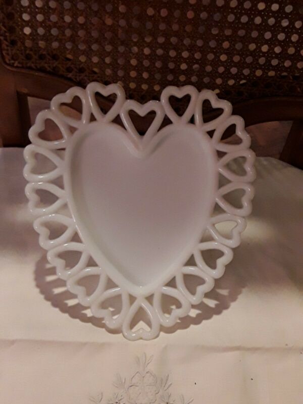 Vintage Heart Shaped White Milk Glass Candy Tray