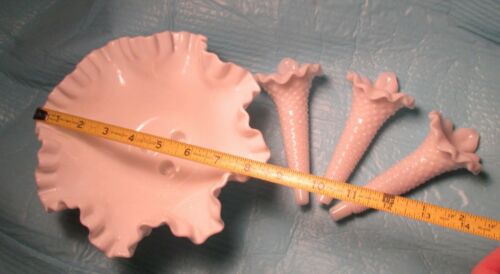 Vintage Fenton White Milk Glass Hobnail Epergne Flower Vase mid century floral