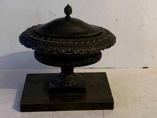 Title (ebay affiliate link): RARE! 1800s Antique Victorian Bronze urn inkwell w/inserts milk glass complete