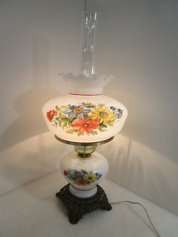Title (ebay affiliate link): Vintage Floral Milk Glass Lamp w/ Floral Pattern ~27"T x 10.5"W
