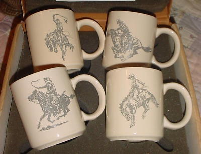 4 Rodeo Cowboy Coffee Cup/Mugs~Marlboro Advertising~NIB
