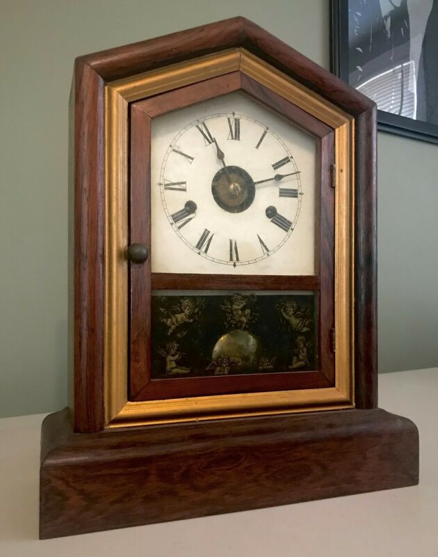 Antique Mantel Clock - Old Glass w/Angel ThemeÂ