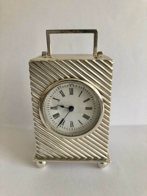 RARE MINIATURE SILVER CARRIAGE CLOCK, NANTLE CLOCK