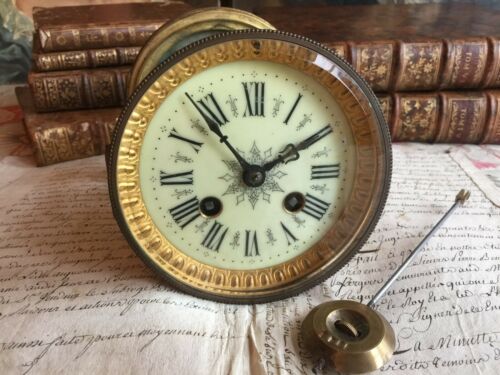 EXQUISITE ANTIQUE FRENCH MANTEL CLOCK PENDULUM MOVEMENT BRASS ROMAN NUMERALS