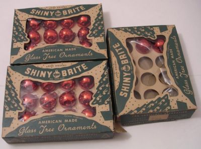 Title (ebay affiliate link): Lot 26 Mini Vtg Shiny Brite Red Ornament Mercury Boxes