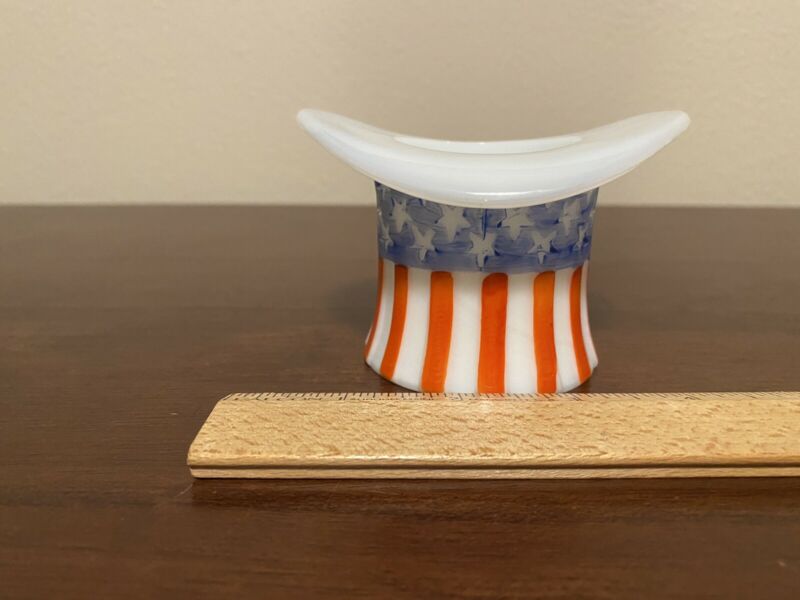Vintage Milk Glass Toothpick Holder Uncle Sam Top Hat