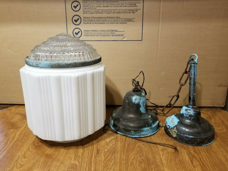 Title (ebay affiliate link): Vintage ART DECO Skyscraper Milk Glass Hanging Light Fixture