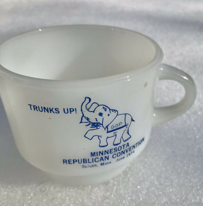 RARE FIRE KING ANCHOR HOCKING REPUBLICAN CONVENTION 1974 MILK GLASS MUG
