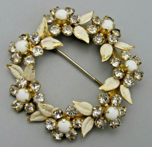 Title (ebay affiliate link): GRANDMA ANTIQUE BROOCH Vintage Jewelry Milk Glass Flower PIN Rhinestone Lot B