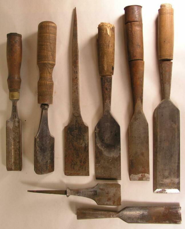 Antique Lot Of 8 Assorted Woosdworking Chisels Wm. Ash & Co,.Buck Bros, Sampson