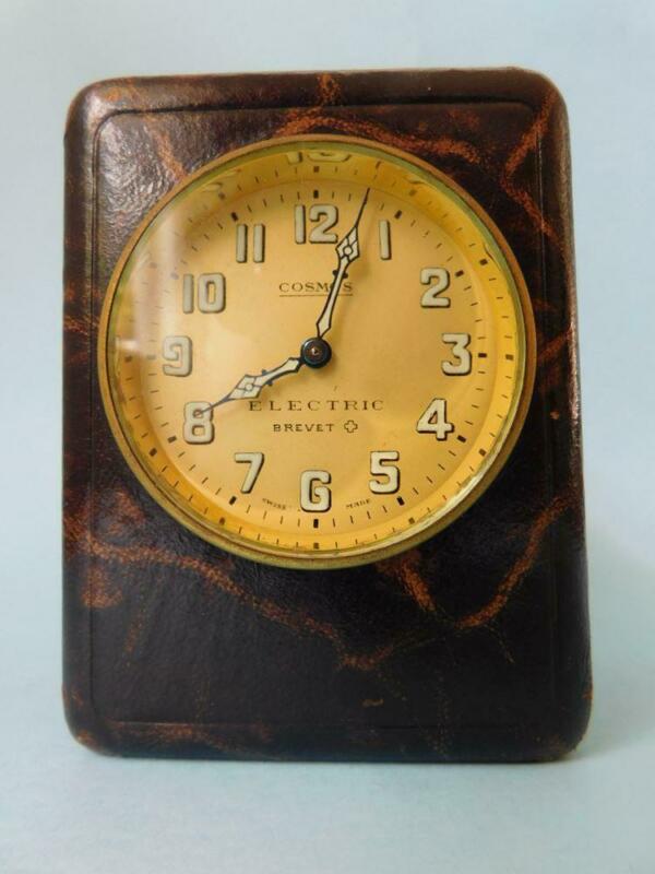 Title (ebay affiliate link): Early Battery Electric Swiss COSMOS Carriage Travel Clock Leather Case 1900s