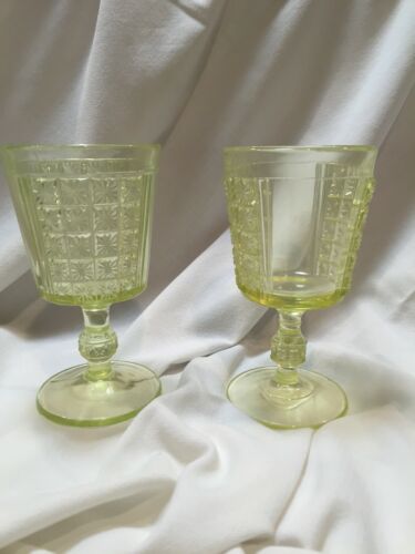 Richard&Hartley/ king co Vaseline glass goblets daisy panel pattern circa 1891