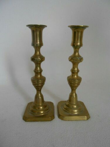 Pair of Antique ROSTAND SOLID BRASS CANDLE STICKS ~ 8 3?4" Tall ~ Signed