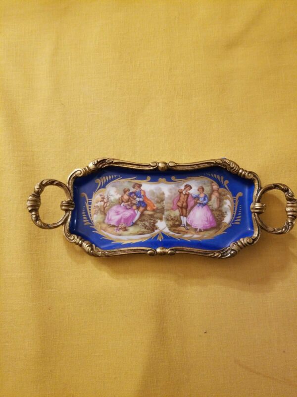 Antique Art gold Hand Painted candy vase Made in France signed S