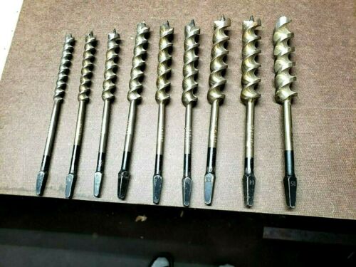 9 Russell Jennings 100 Stanley 100 Plus Auger Bits. Very Good Condition
