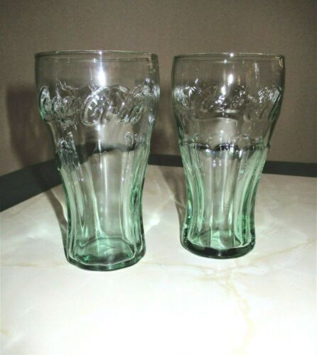 Coca-Cola/Libby, Green Tint, Contoured Beverage Glasses, Set of 2, 4.5", 6 oz.