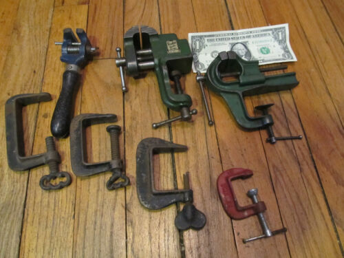 Title (ebay affiliate link): Lot of 7 Vintage Antique Jewelers Watchmakers Mini Table Anvil Vises & Clamps