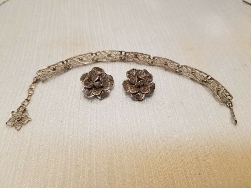 Title (ebay affiliate link): ANTIQUE SILVER FILAGREE CLIP ON EARINGS & BRACELET