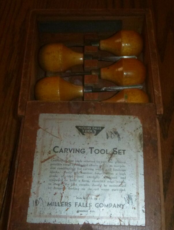 Title (ebay affiliate link): Miller Falls Tools #107 4pc Carving tool set in orig. dove tailed box with stone
