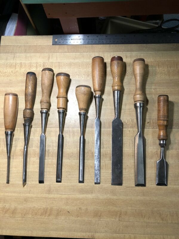 Title (ebay affiliate link): 9 Old Vintage Keen Kutter Socket Wood Chisels, Woodworking Tools